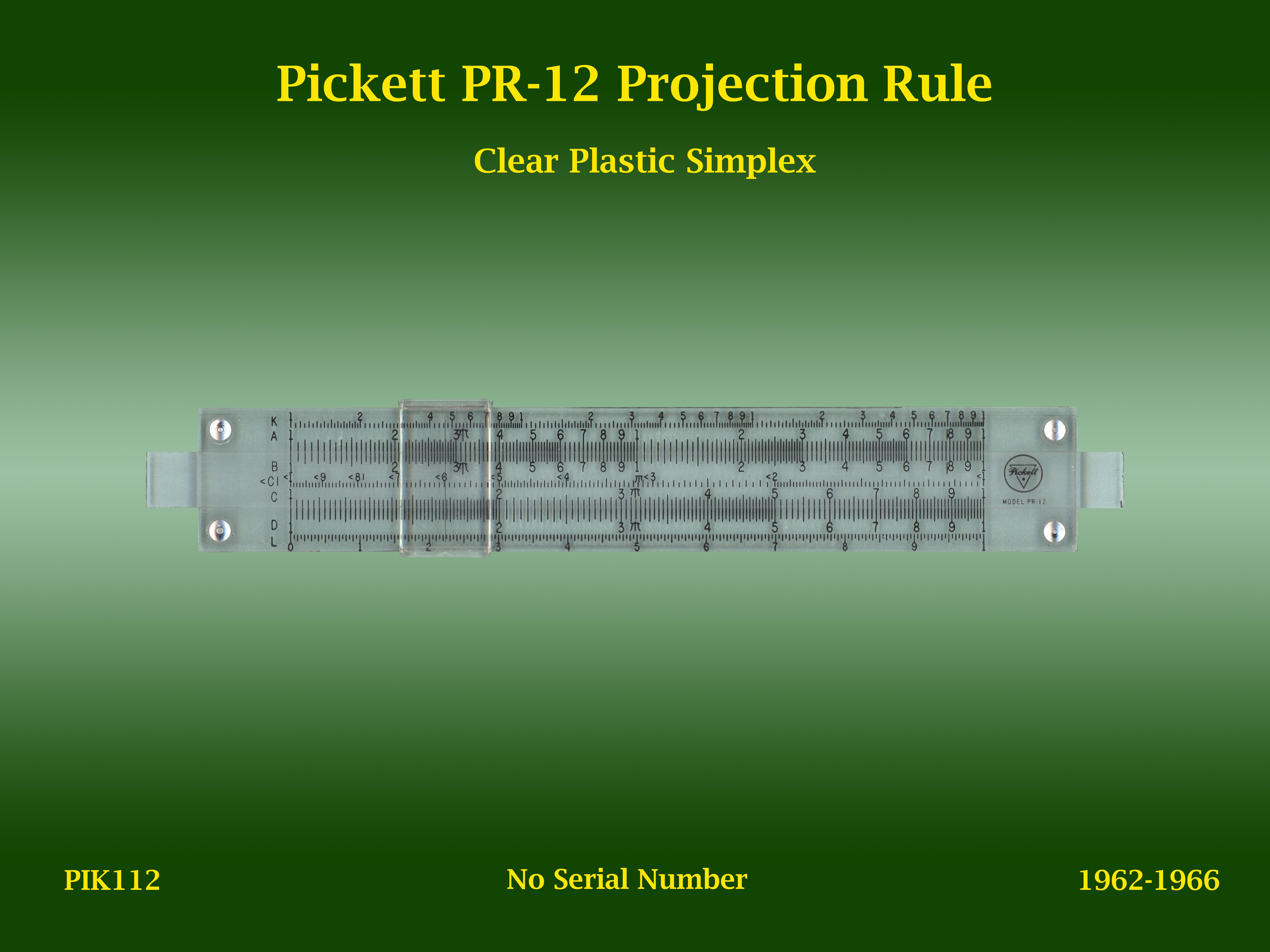 | PIK112 | Linear | PR-12 | Projection Rule | | n/a | Pickett | USA | | Plastic | "8" | 1962-1966 | C5 |