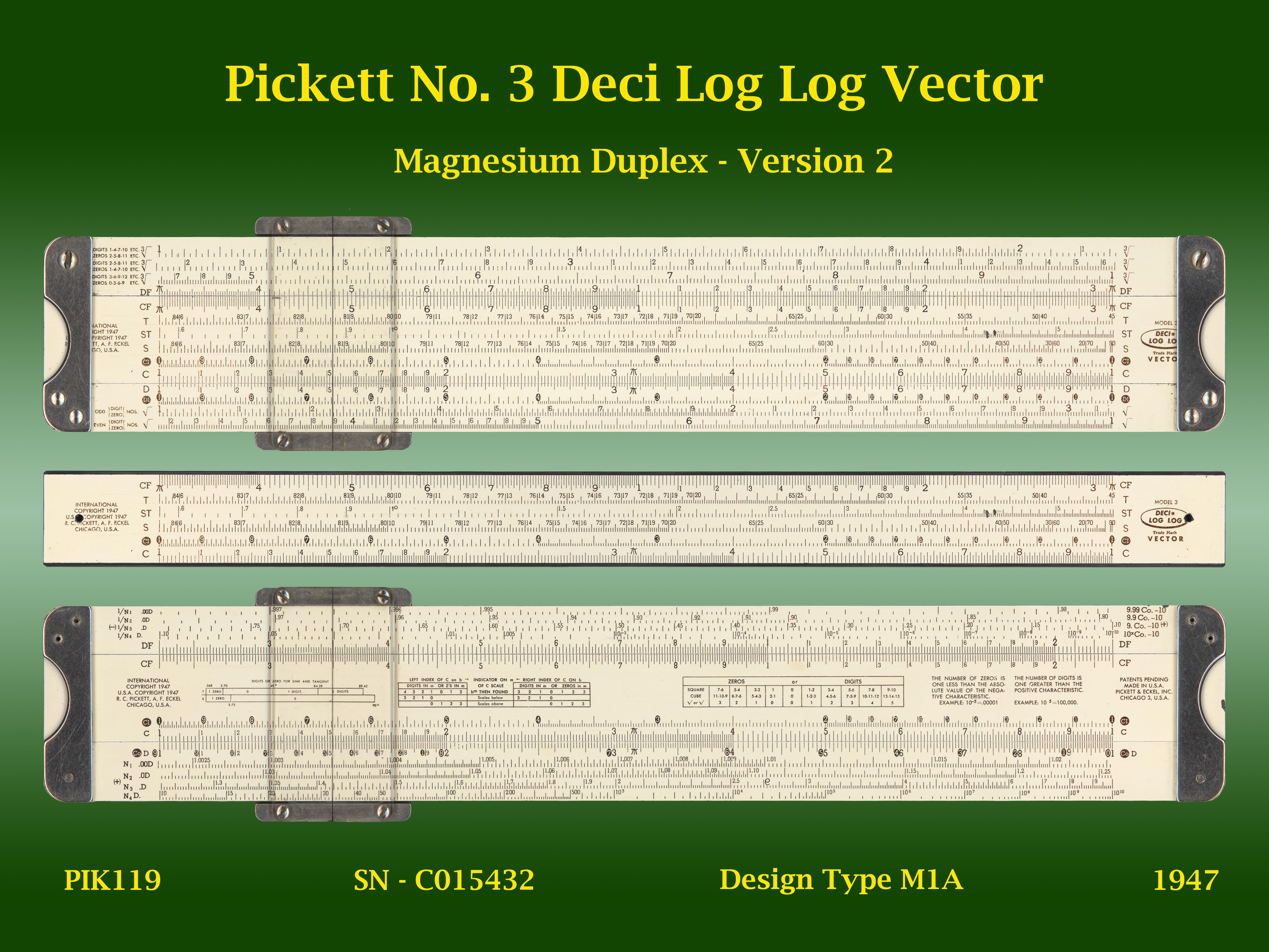| PIK119 | Linear | No. 3 | Deci Log Log Vector | 2 | M1A | Pickett | USA | C015432 | Magnesium | "10" | 1947 | C4 |