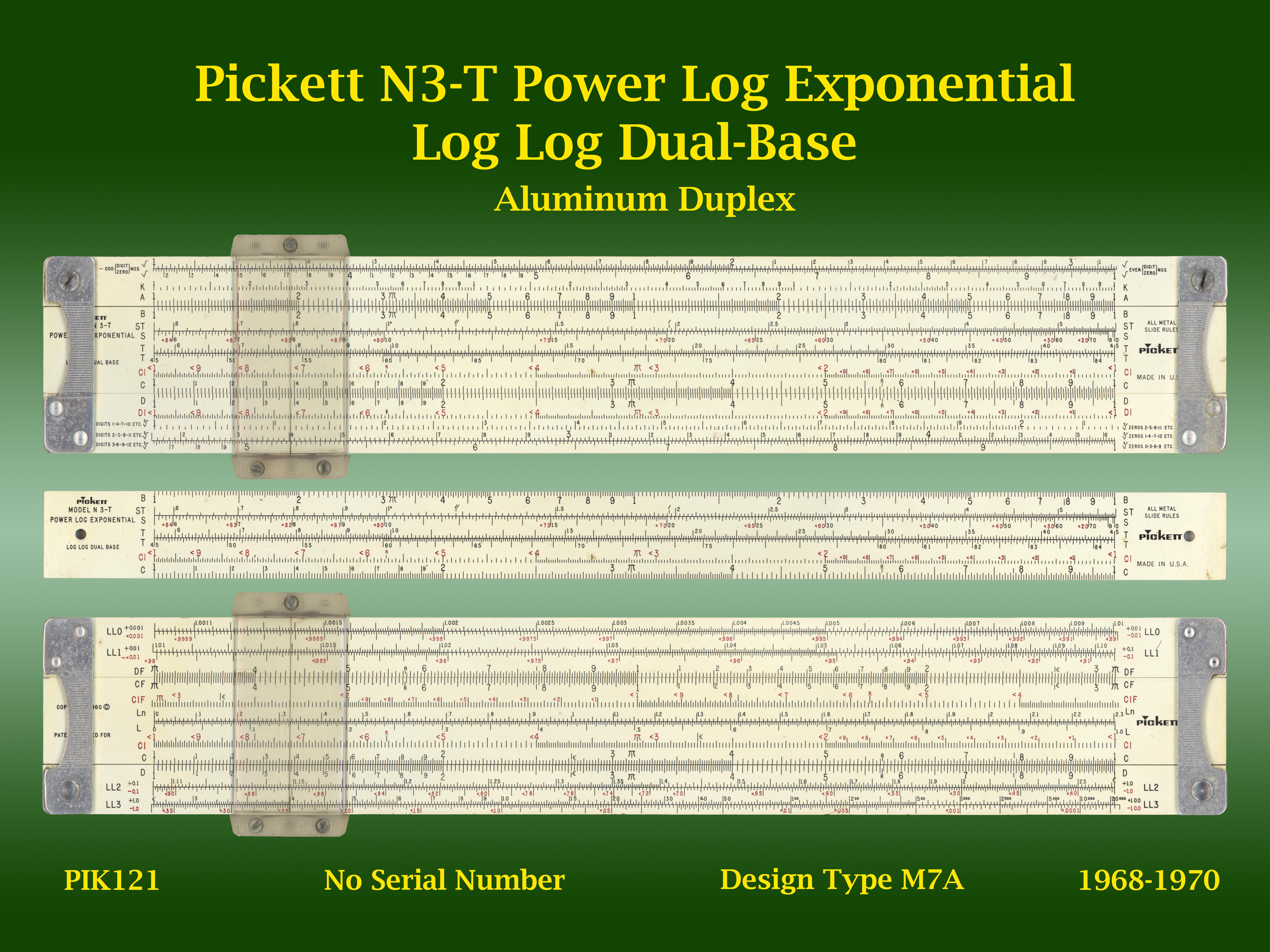 Log log slide rule with 33 scales. K and Ln scales added and scale order rearranged. Log log scales prefix changed from N to LL. Model name changed.