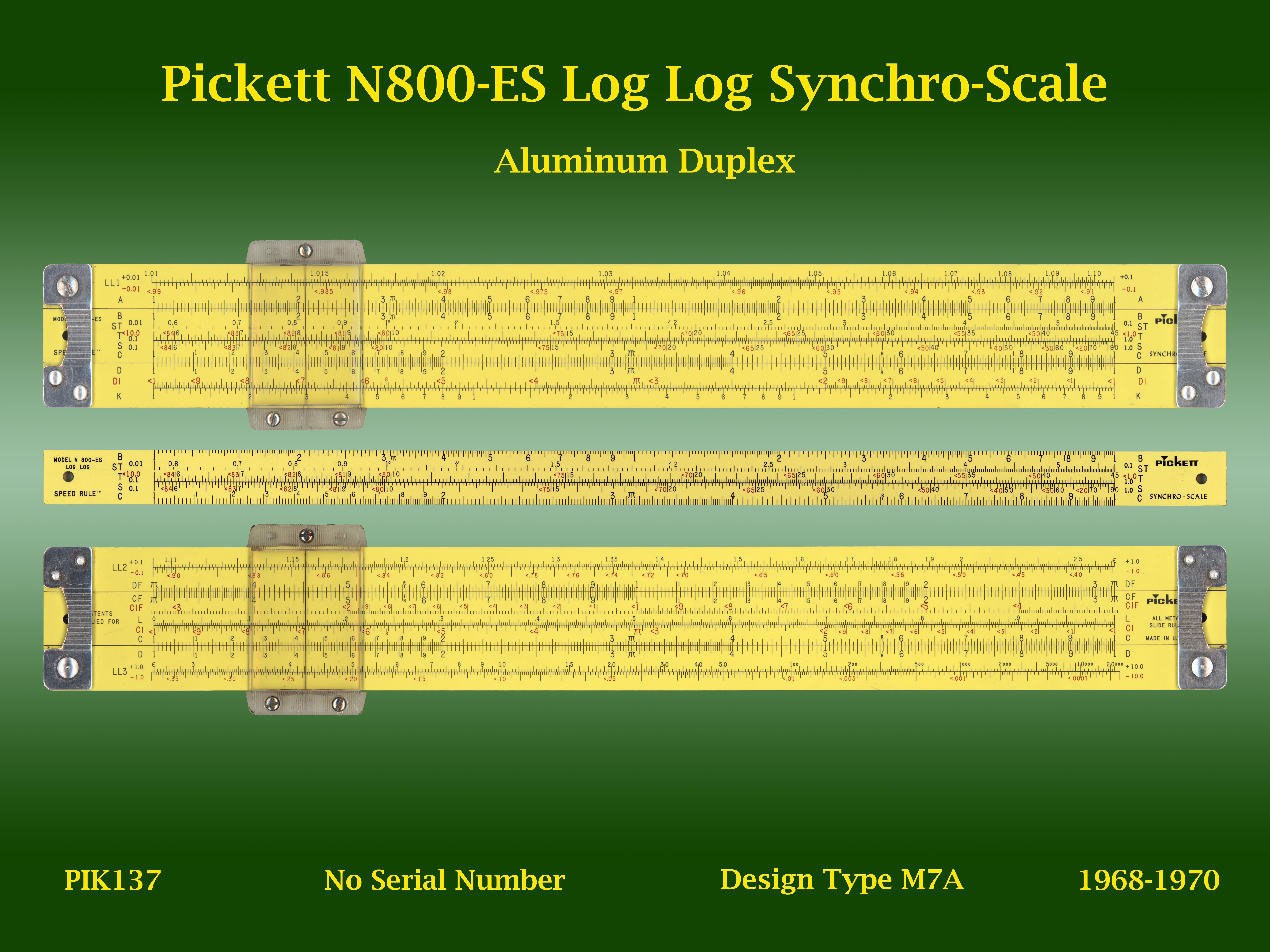 | PIK137 | Linear | N800-ES | Log Log Synchro-Scale | | M7A | Pickett | USA | | Aluminum | "10" | 1968-1970 | C4 |