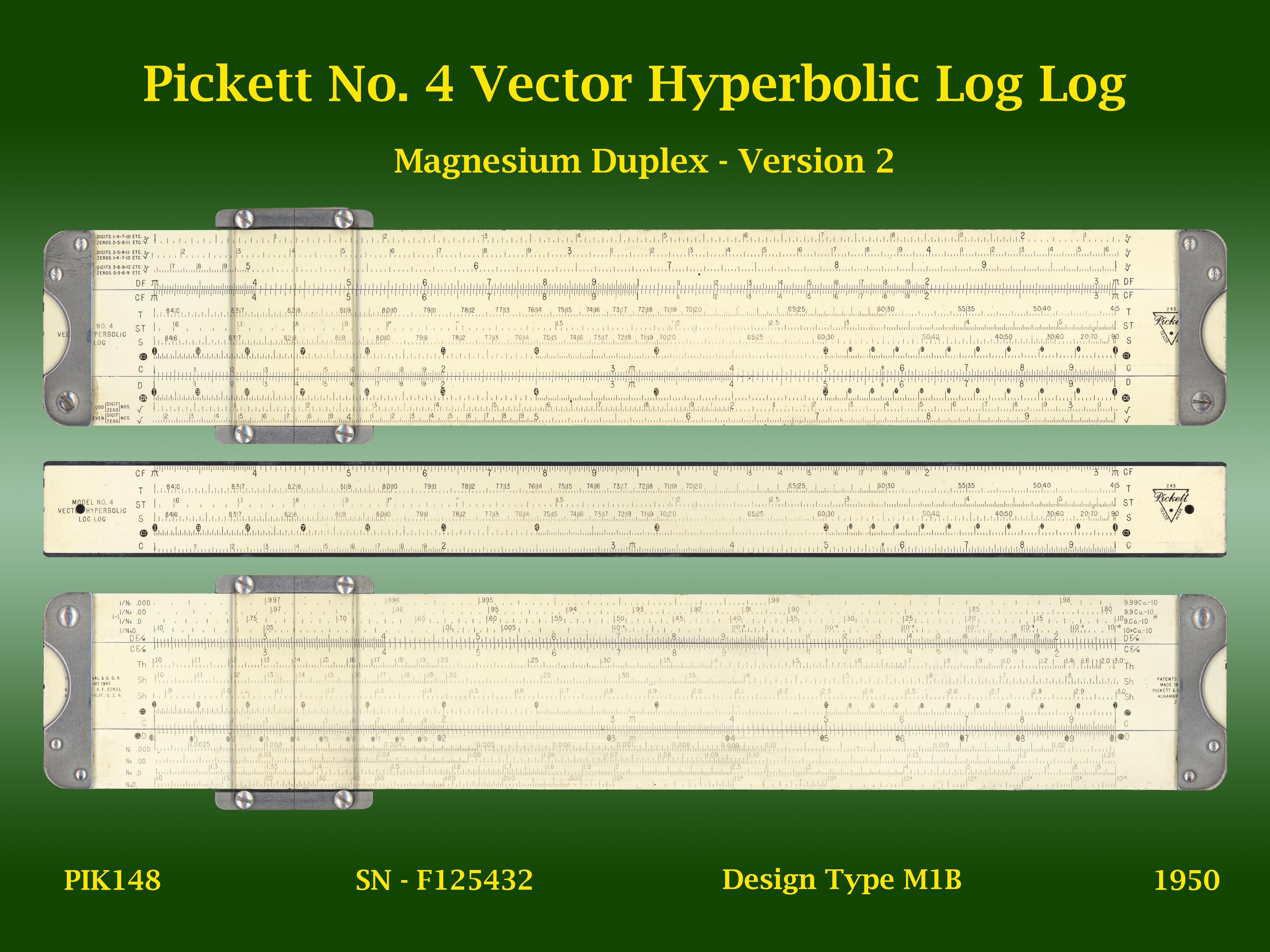 "Log log hyperbolic slide rule with 33 scales. Similar to first version, but with rear folded scales labeled DF/M and CF/M. Model name changed."