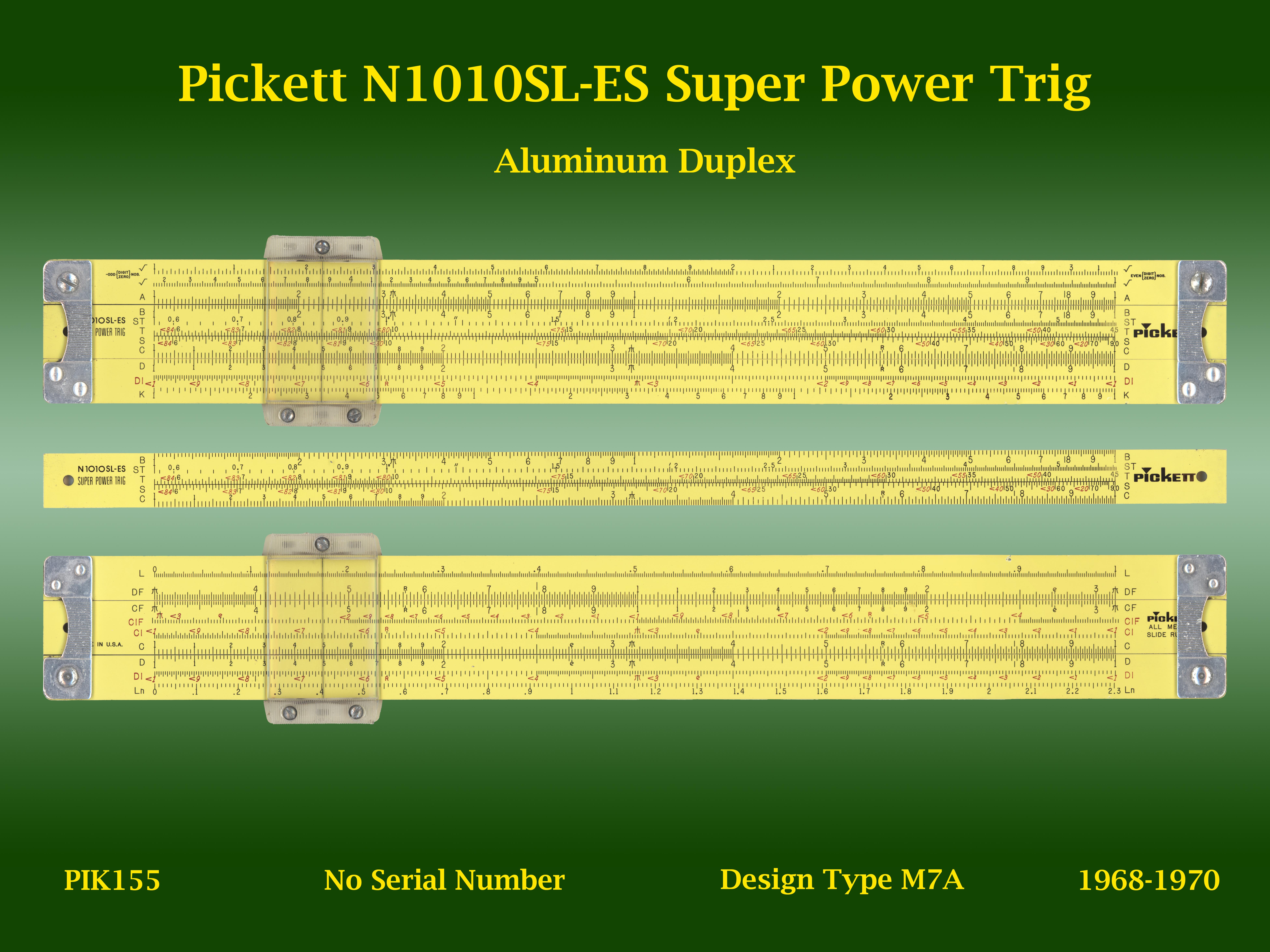 | PIK155 | Linear | N1010SL-ES | Super Power Trig | | M7A | Pickett | USA | | Aluminum | "10" | 1968-1970 | C4 |