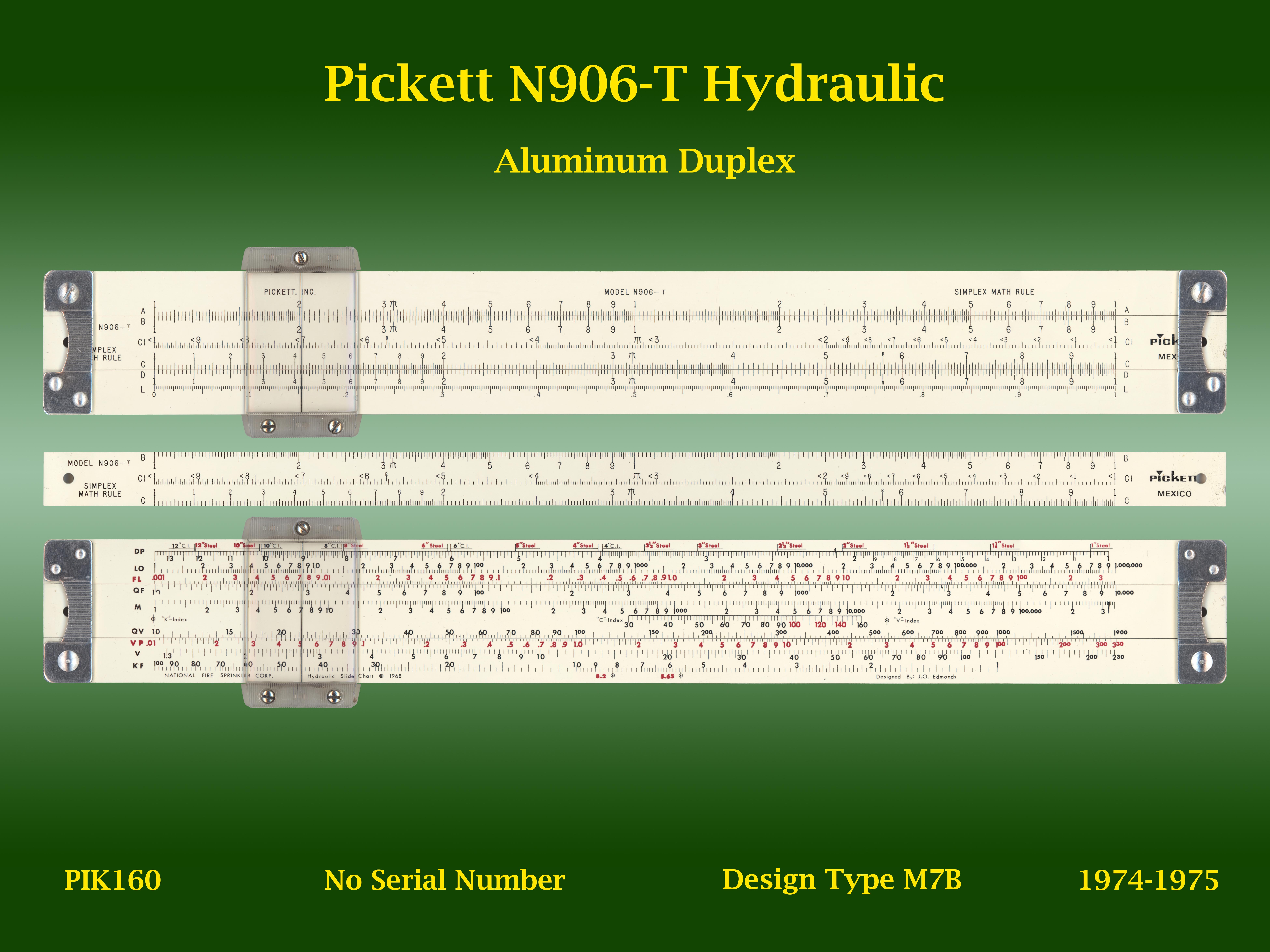 | PIK160 | Linear | N906-T | Hydraulic Slide Chart | | M7B | Pickett | Mexico | | Aluminum | "10" | 1974-1975 | C2 |