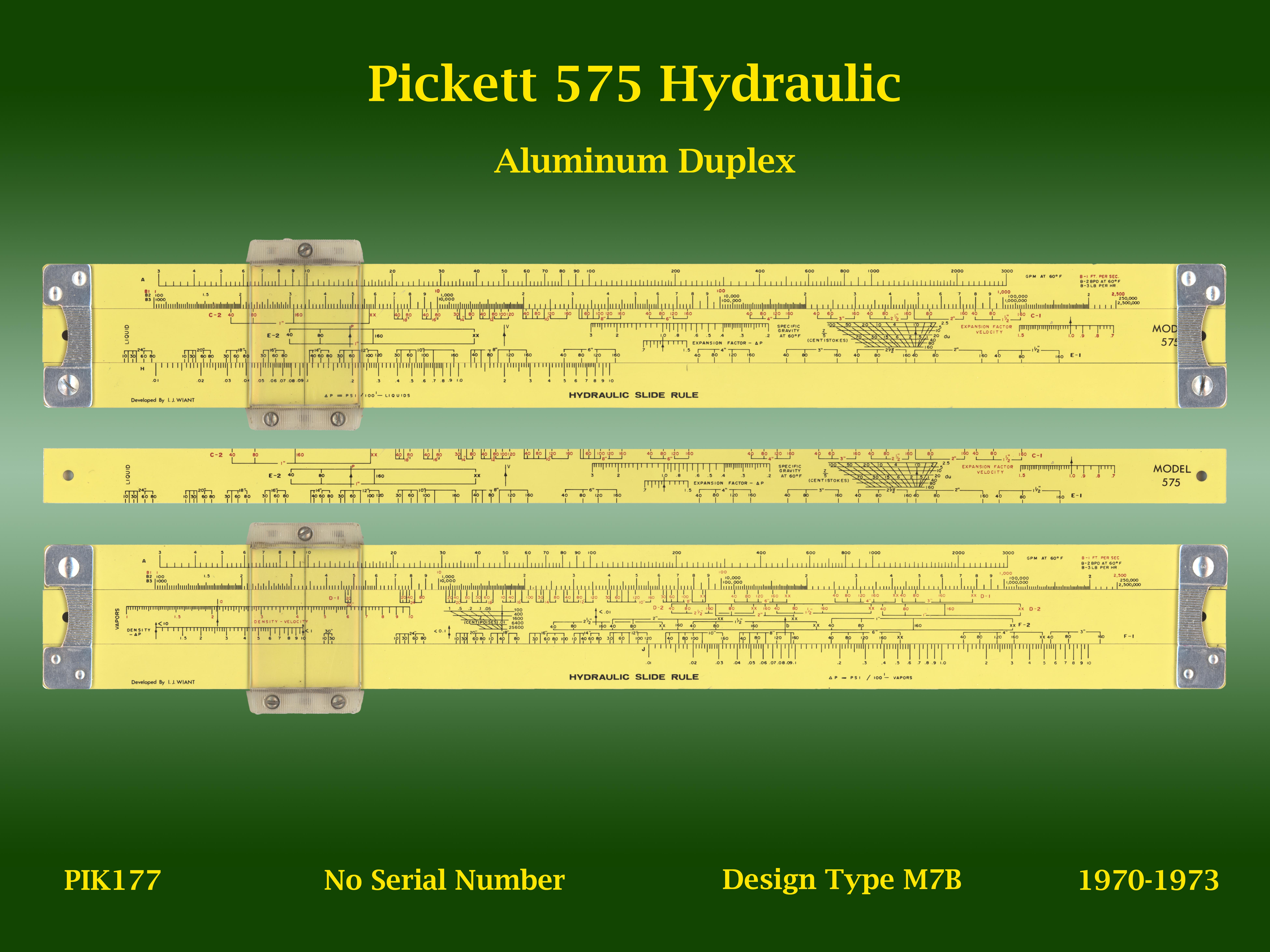 | PIK177 | Linear | 575 | Hydraulic | | M7B | Pickett | USA | | Aluminum | "10" | 1970-1973 | C3 |