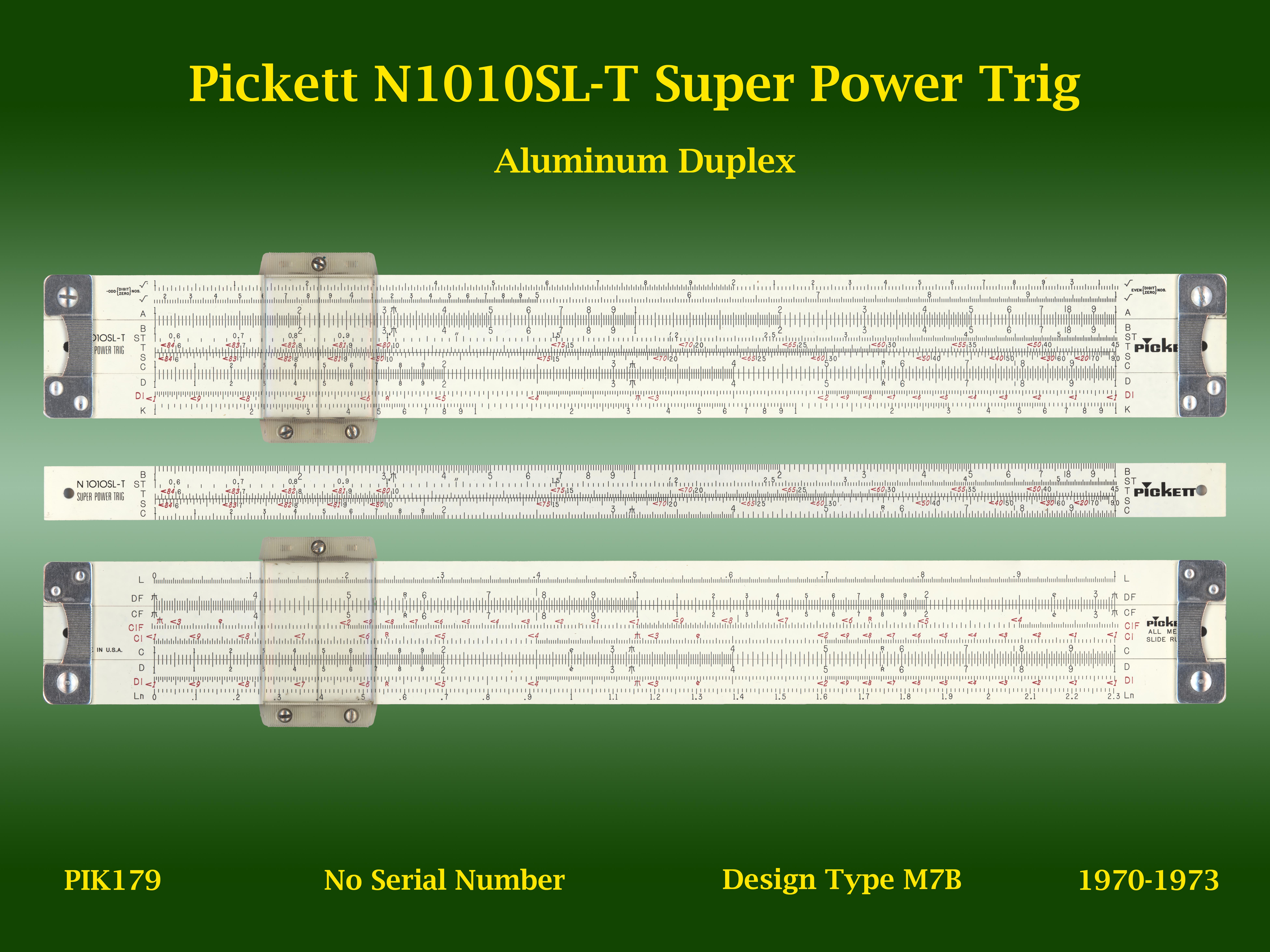 | PIK179 | Linear | N1010SL-T | Super Power Trig | | M7B | Pickett | USA | | Aluminum | "10" | 1970-1973 | C3 |