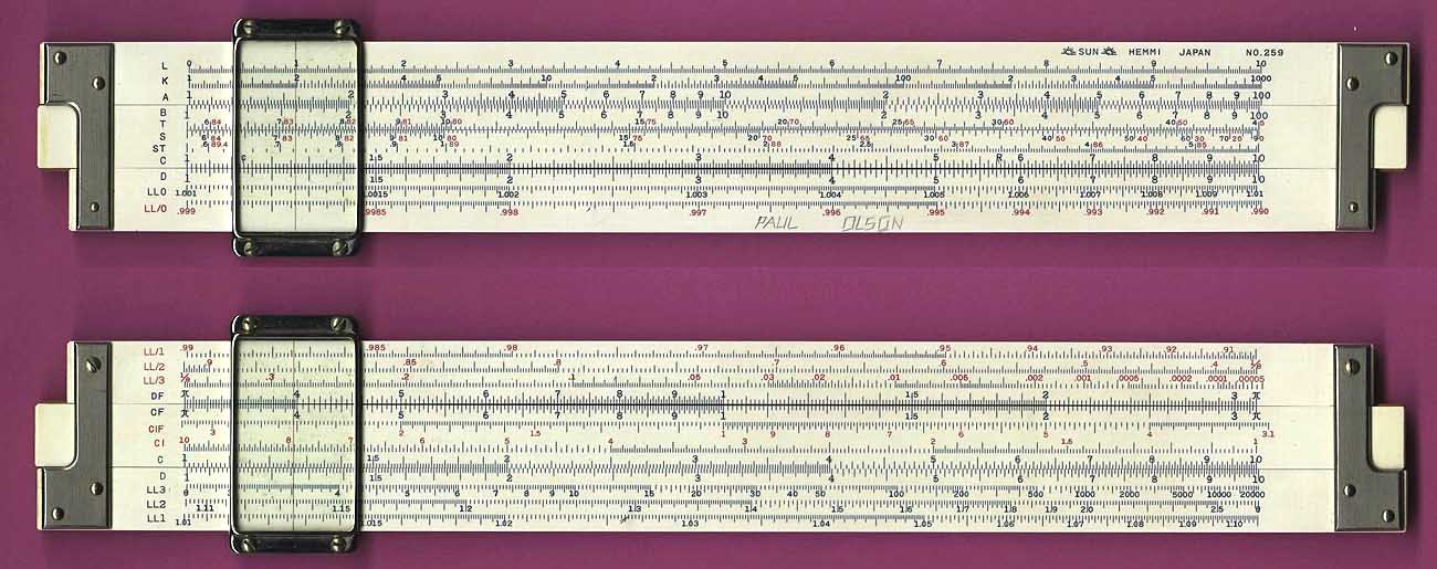 Hemmi 259 and 259D Expert Mechanical EngineerJapan, 1951+, duplex, 25 cm scales, celluloid laminate on bamboo