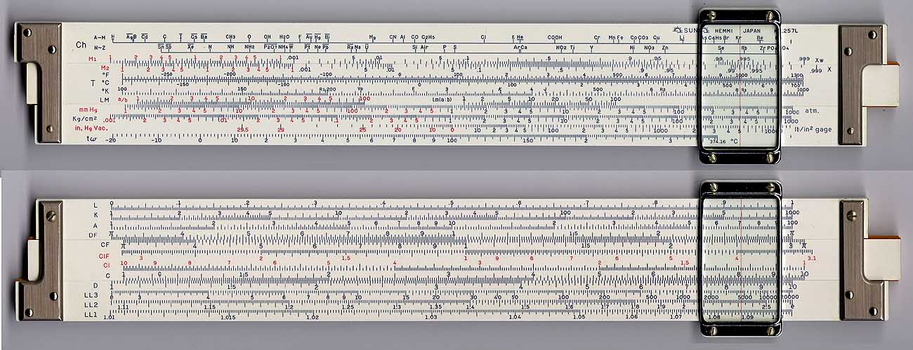 Hemmi 257L Chemical EngineerJapan, 1971+ (no. 257 1952-1967), duplex, 25 cm scales, celluloid laminate on bamboo