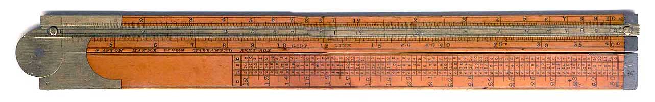 The Coggeshall slide rule, also called a carpenter's slide rule, was designed by Henry Coggeshall in 1677 to facilitate measuring the dimensions, surface area, and solidity of timber.
